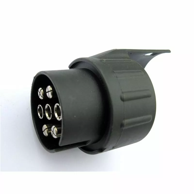 Adaptador eléctrico que permite la instalación de los portabicis Peruzzo a la bola con luces incluidas en cualquier coche con enchufe de 7 pines.