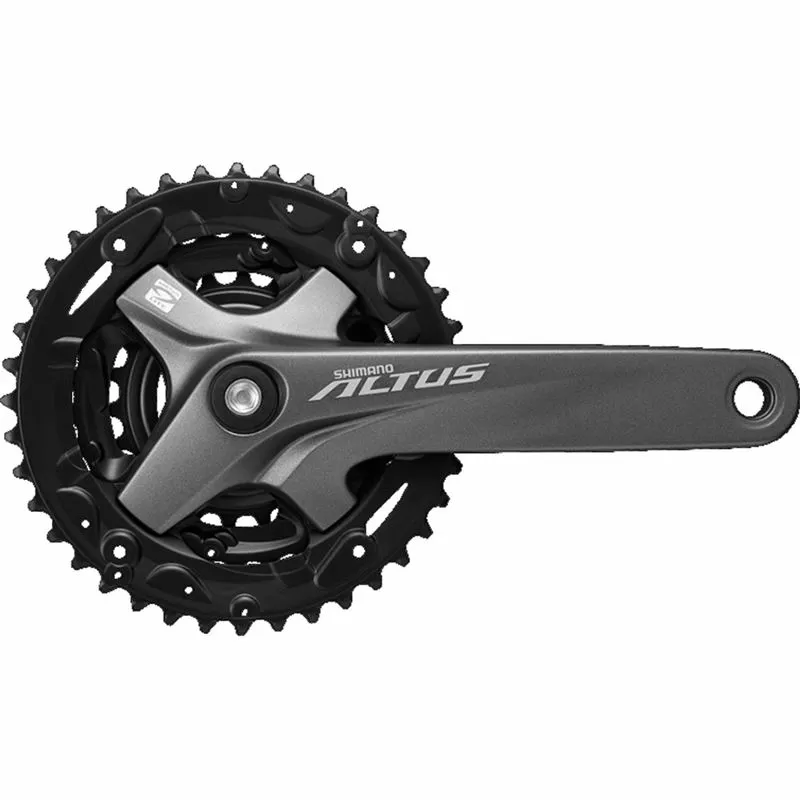 Juego de bielas para MTB. Incorporan el eje integrado, de 24 mm (sistema standard Shimano). Se ofrecen con distintas opciones de desarrollos de platos. Se recomienda su empleo en sistemas de cambio de 9 velocidades.