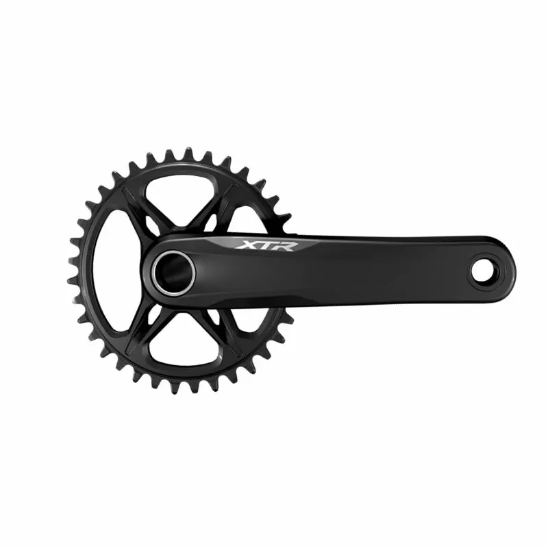 Juego de bielas para MTB. Incorporan el eje integrado, de 24 mm (sistema standard Shimano). Se ofrecen con distintas opciones de desarrollos de platos. Se recomienda su empleo en sistemas de cambio de 12 velocidades.