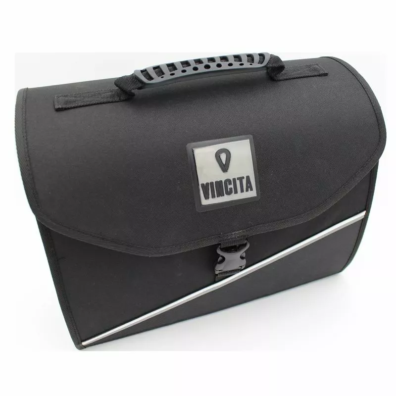 Sencillo maletín semirrígido para llevar en un lateral del portabultos. Anclaje universal mediante ganchos y correas de velcro.