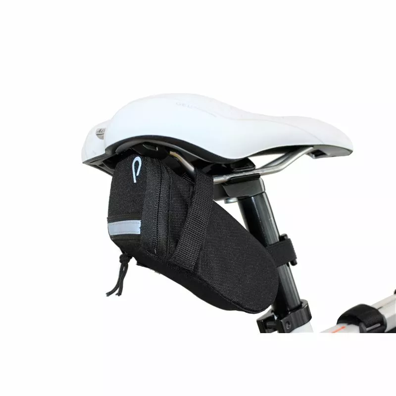 Bolsa de sillín de tamaño compacto y con un bolsillo interior para una mejor ordenación. Se sujeta al sillín mediante correas.