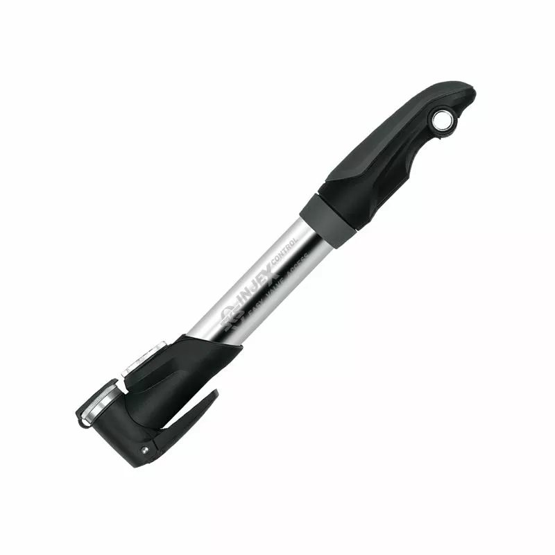 La perfecta bomba de mano. Fabricada en aluminio, incluye manómetro analógico para un perfecto control de la presión de inflado. Su cabezal EVA es compatible con todo tipo de válvulas. Su asa en forma de T garantiza un uso cómodo, y su capacidad telescópica proporciona un mayor volumen de aire en cada acción. Soporte incluído.