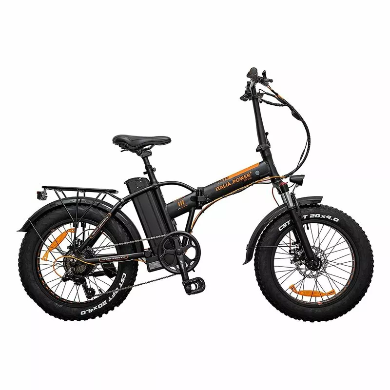 La nueva ebike Italia Power Off Grid es la bicicleta eléctrica plegable y todoterreno. Es fácil de guardar y ocupa poco espacio, y además la batería es extraíble y fácil de recargar. Las ruedas fat de 20″ son excelentes para caminos en mal estado o pavé. Su grosor no dificultará el avance, gracias a la asistencia de motor de 250W, con una autonomía estimada de hasta 45km. Todo son ventajas: menos emisiones de CO2 para tu ciudad, y más movilidad, energía y bienestar para ti.