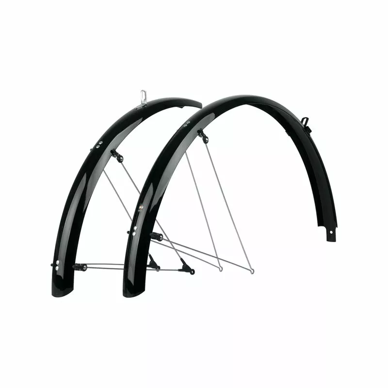 Juego de guardabarros de varillas, delantero y trasero. Disponible en varias medidas. Las varillas de 3 mm de acero inoxidable son resistentes, duraderas y adaptables. Compatibles con la mayoría de bicicletas mixtas, urbanas y trekking.