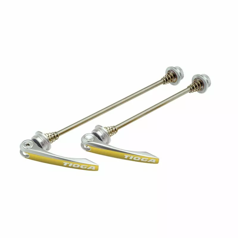 Juego de cierres rápidos de rueda QR, para ejes de 100 mm y 135 mm, disponibles en varios colores. Fabricados en aluminio CNC, ofrecen un peso muy bajo.