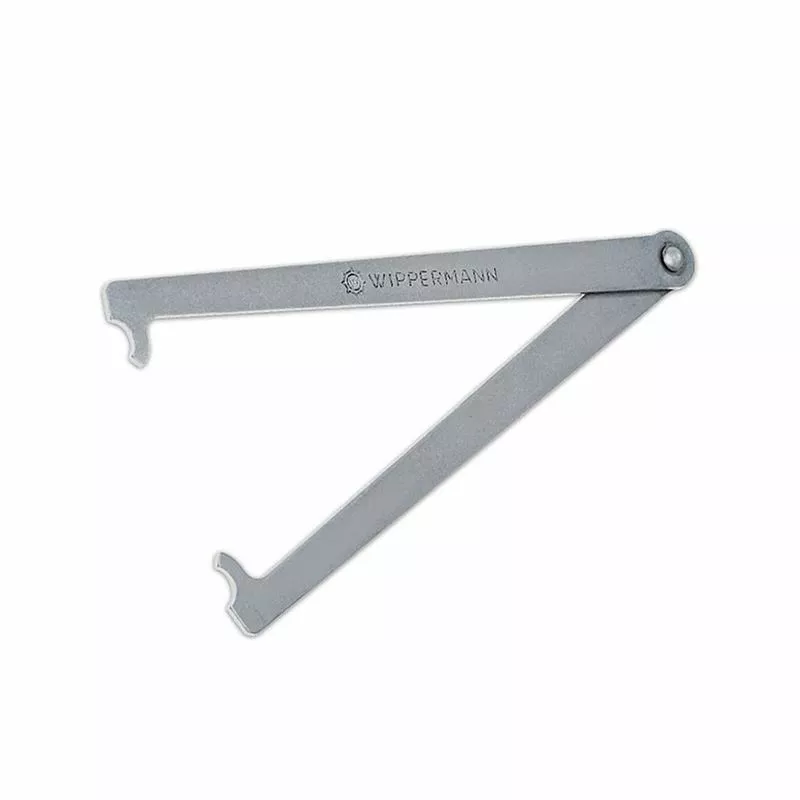 MODO DE USO: Simplemente se introduce un extremo en la cadena, se estira el medidor y se introduce el otro extremo también. Si el ángulo que forma la herramienta es de 180º o toca la cadena, está desgastada al 1[%] y requiere recambio.