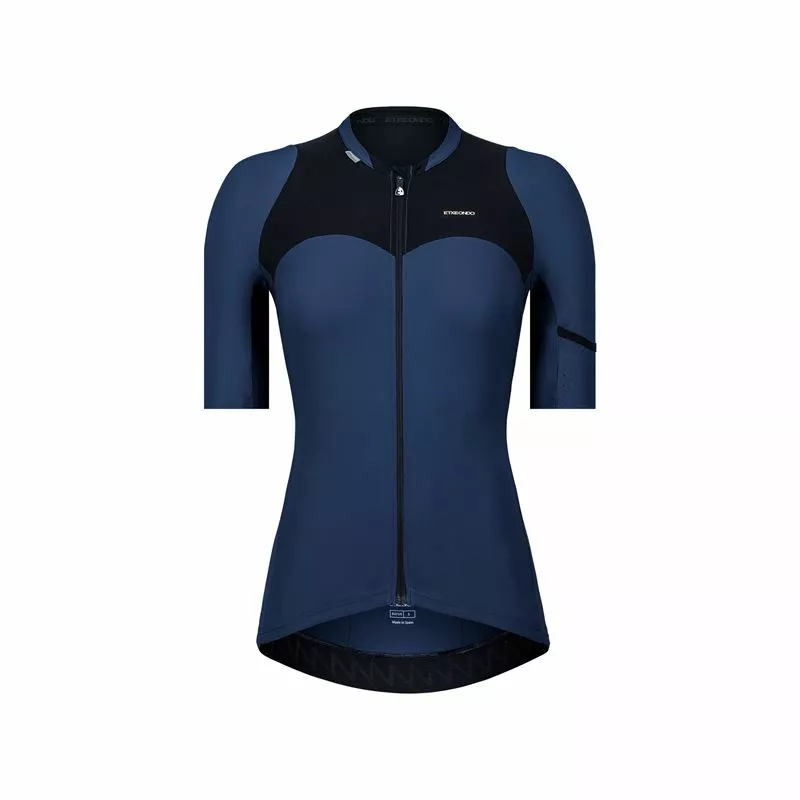 Se añade una cremallera frontal con bloqueo, ultraligera y de bajo volumen que permite abrir el maillot, si fuera necesario, con una sola mano evitando soltarlas del manillar.
