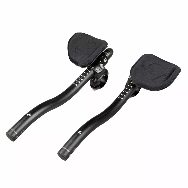 Extensiones de aleación extruída y abrazadera de aleación forjada. Se ajusta al diámetro de abrazadera de 31,8 mm o de 26,0 mm (con cuña incluida). Guiado de cables interno aerodinámico. Las almohadillas con una altura de 65 mm dejan espacio suficiente para la colocación de las manos al usarlos sobre manillares de carretera. Forma aerodinámica con curvatura en S optimizada en el túnel de viento. Compatible con extensiones de carbono y aluminio estándar de 22,2 mm.