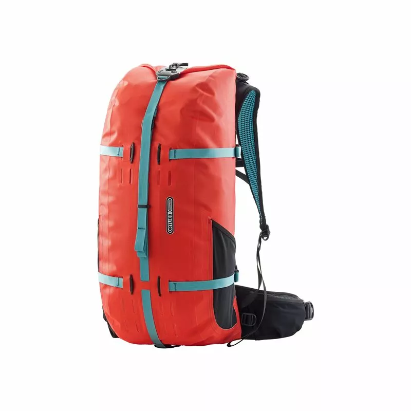 La primera mochila impermeable que se abre como una bolsa de viaje: incorpora una cremallera longitudinal que recorre la mochila de arriba abajo por la parte interior. La mochila queda perfectamente ajustada gracias a sus asas y sus correas.