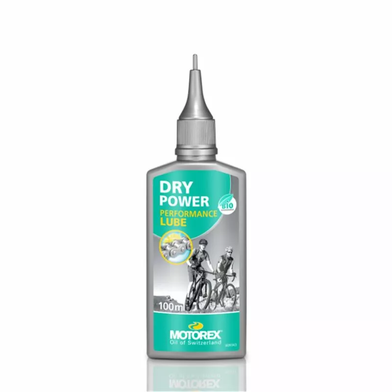 Lubricante biodegradable con base de cera para la cadena de la bicicleta, diseñado para condiciones secas. Motorex Dry Power Lube penetra más rápido y forma una superficie homogénea que protege la cadena contra la suciedad y el polvo. Proporciona una lubricación mejorada combinada con una excelente protección contra la corrosión y el desgaste, y reduce la abrasión. Ideal para la lubricación en condiciones secas y polvorientas.