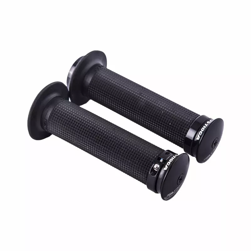 Específicamente pensados para BMX, su diseño punteado te proporcionará una máximo agarre y perfecto control sobre la bicicleta. Con sistema de retención, quedan fijos sobre el manillar sin deslizar sobre el mismo.