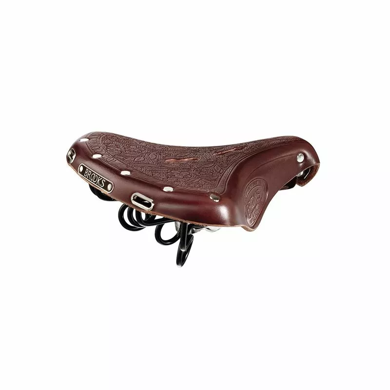 El B18 Lady, con el diseño original de flores en relieve de 1905. En 1898, John Boultbee Brooks patentó un proceso para estampar sillines de cuero. A principios de la década de 1900, Brooks pudo suministrar una gama de productos ricamente decorados para damas. El B18 Lady es uno de los mejores ejemplos de estas monturas. Una verdadera pieza de colección, la B18 Lady también cuenta con los mismos resortes de bucle únicos, incorporados dentro de los rieles de las sillas, que fueron una de las primeras características de suspensión patentadas por Brooks.