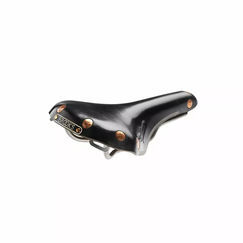 El hermoso Swift era el sillín de carreras de caballero más joven de la gama Brooks. Presenta lados inferiores delicadamente cortados a mano, donde se recorta una delgada franja de la superficie superior de cuero, lo que expone el ante de color más claro, proporcionando un atractivo acento visual y una mayor comodidad al pedalear. Los grandes remaches de cobre en la nariz y la cola también se martillan a mano. Como sucede con todas las monturas Brooks fabricadas a mano, el Swift ostenta con orgullo una placa de metal en la parte trasera, y además dos detalles gráficos en relieve en los laterales con el nombre del sillín e incorporando el icono de un Swift en vuelo.