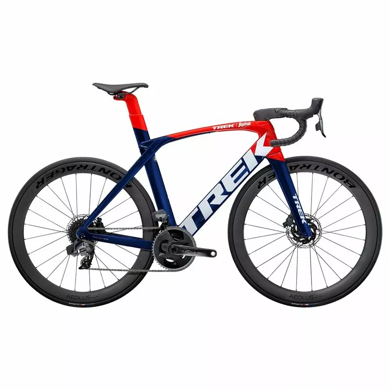 EL CARBONO OCLV SERIE 800 ES EL LAMINADO MÁS LIGERO QUE JAMÁS HAYAMOS FABRICADO, Y HACE QUE LA MADONE SEA MÁS RÁPIDA SOBRE CUALQUIER TERRENO, INDEPENDIENTEMENTE DE LAS CONDICIONES. INCORPORA UN MEDIDOR DE POTENCIA SRAM FORCE AXS PARA SACARLE EL MÁXIMO RENDIMIENTO A LOS ENTRENAMIENTOS DESDE EL PRIMER MOMENTO. EL ISOSPEED AJUSTABLE DEL TUBO HORIZONTAL PERMITE AJUSTAR LA ABSORCIÓN VERTICAL SEGÚN TUS PREFERENCIAS, Y ESTÁ AMORTIGUADO CON UN ELASTÓMERO QUE PROPORCIONA UN MOVIMIENTO SUAVE, CONTROLADO Y ESTABLE.